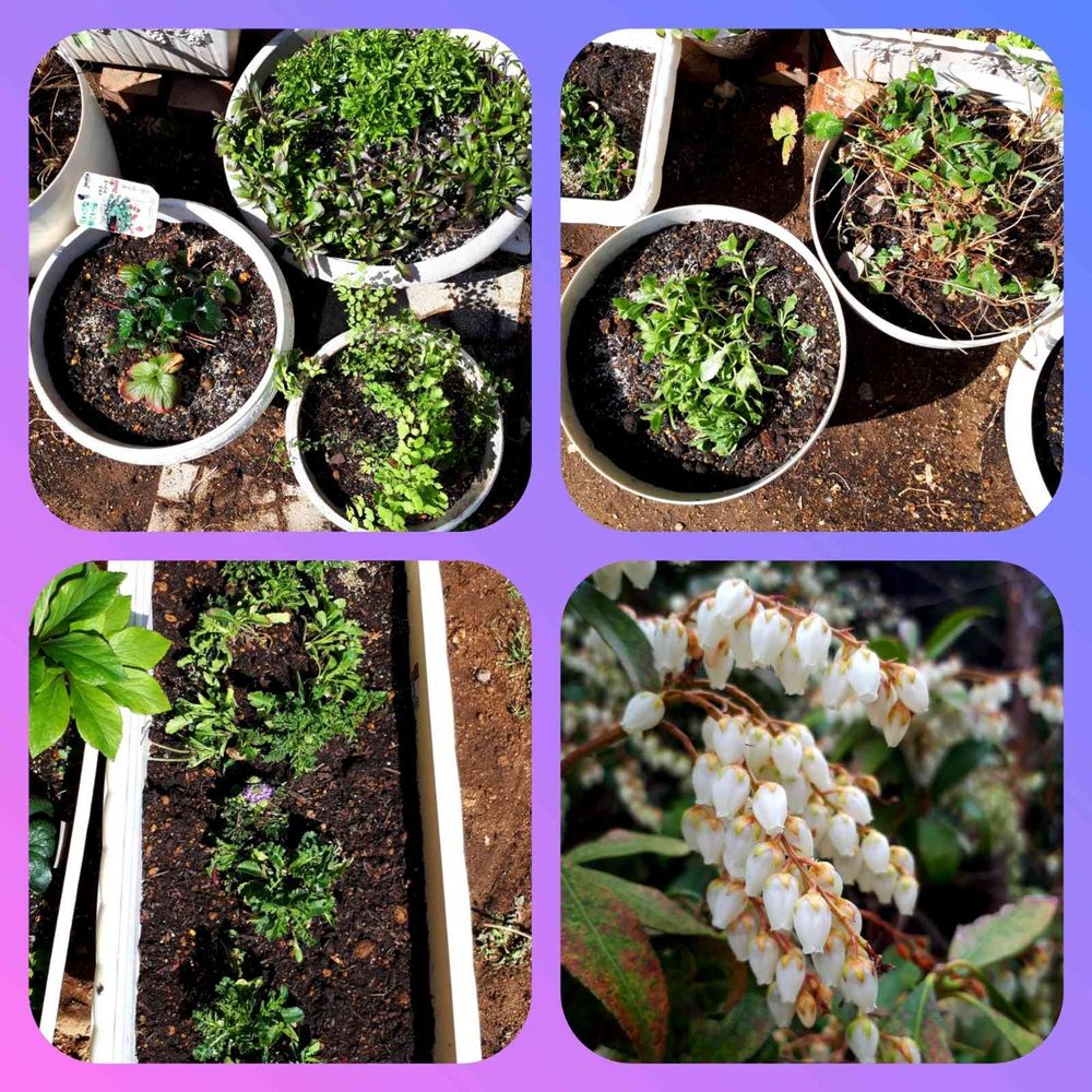 冬越ししたワイルドストロベリー🍓や、窮屈そうだった姫松虫草、ナメクジに狙われ通しだったアジアンタム🌿🌿🌿
