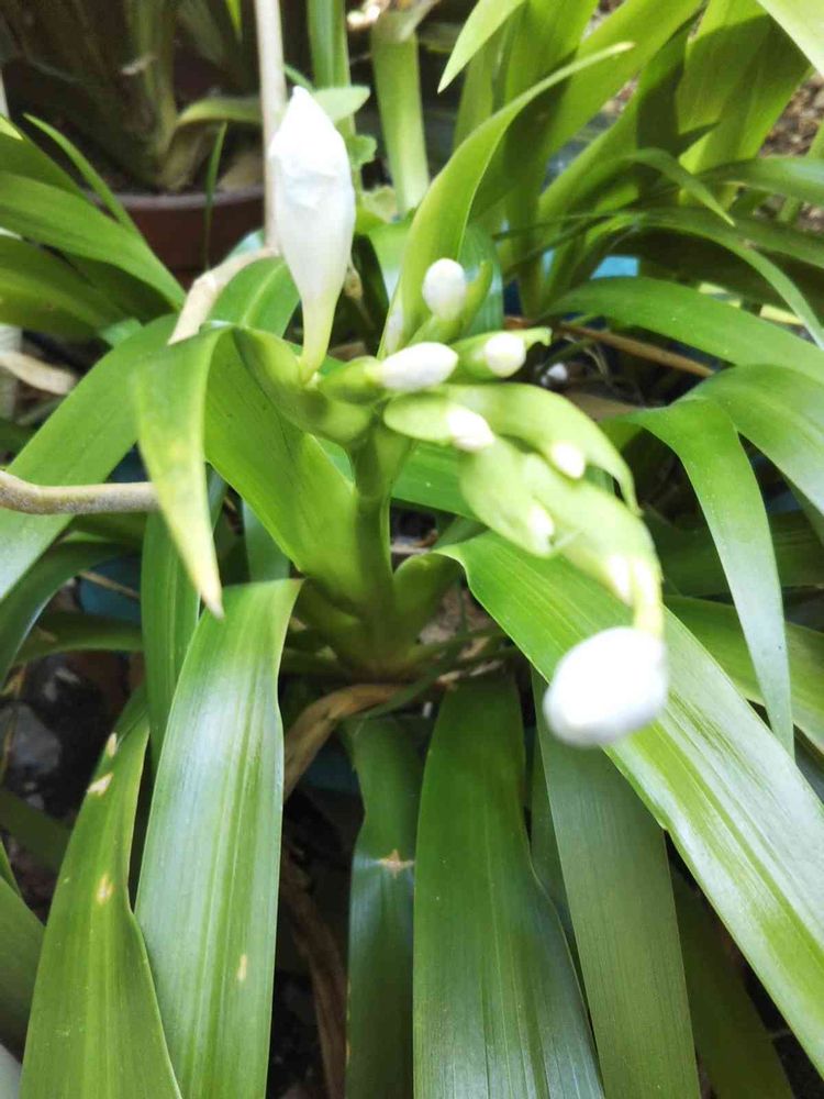 数年前に地元のイベントで激安でゲトしたシャガの苗に留守中に花芽がついてました。