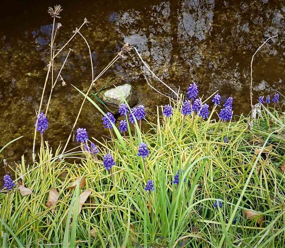 小川のほとりにムスカリの花が沢山咲いていました🐤