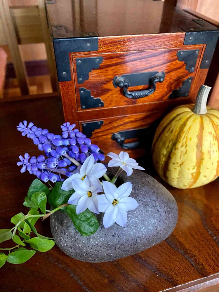 石を🪨くり抜いたような、趣きのある花器ですねぇ💖😊コロンと丸いフォルム✨好きだわ✨