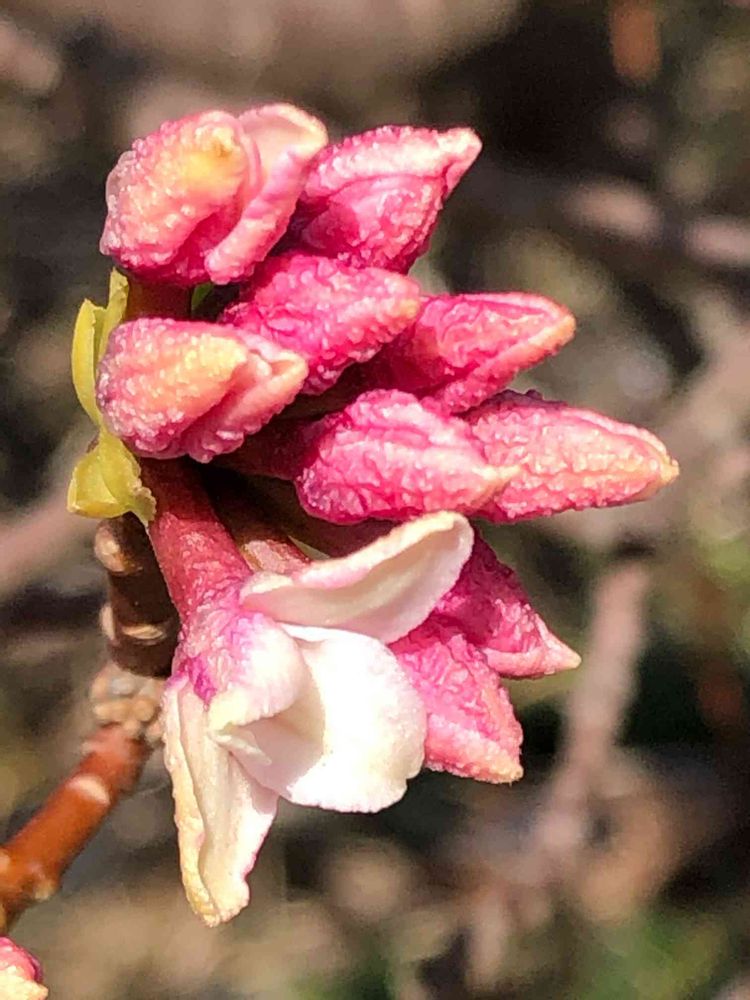 3月10日、鹿沼市内で出会った、やさしい香りを放ち、まだ咲き始めたばかりの「沈丁花」の花🌸