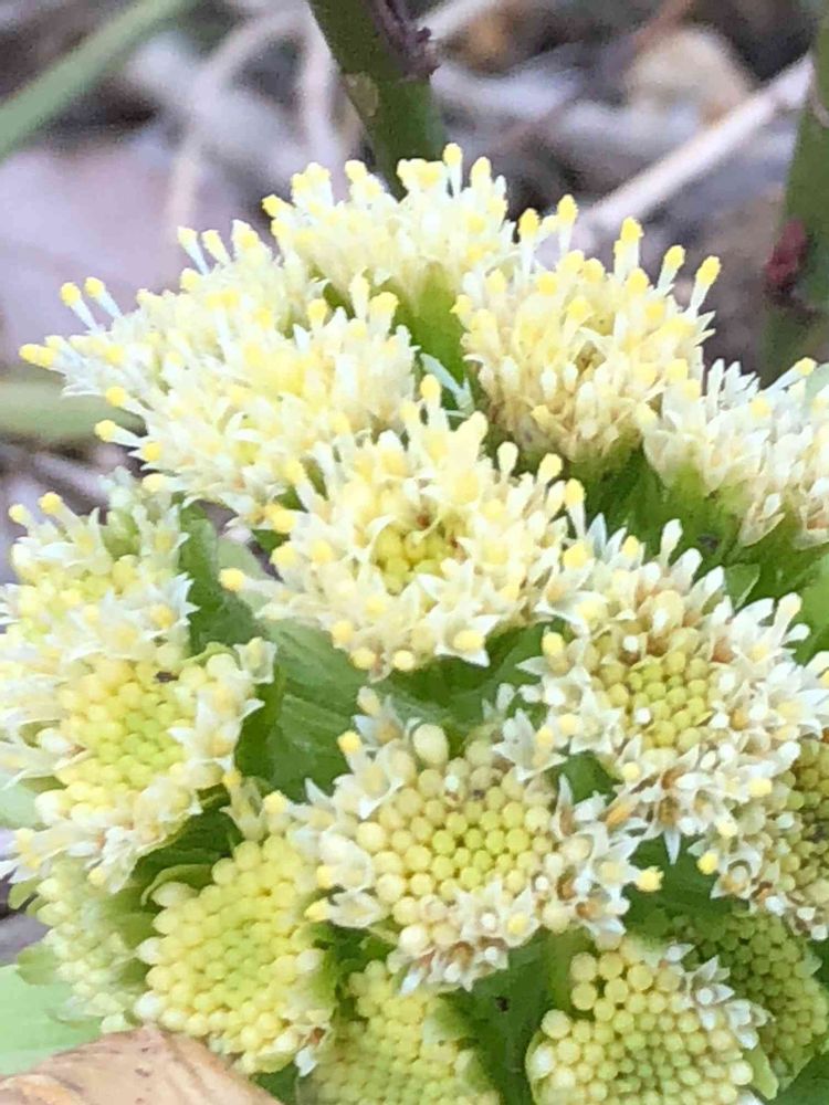 3月10日、日光市板橋付近で出会った、今年はまだ始めての出会いなのに、すでに花🌼を開いて、私を迎えた、「ふきのとう」のやさしい花🌼