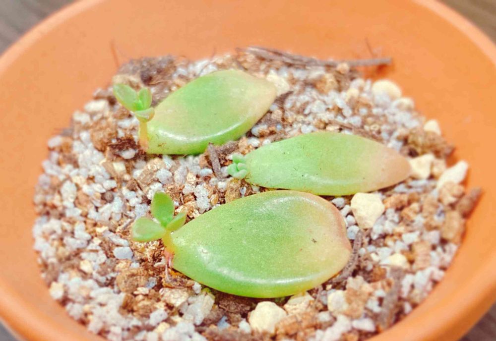 葉挿ししていた子から、ちっちゃいけど可愛い葉っぱちゃんたちが..🌱✨
