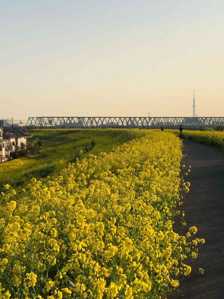 菜の花が土手一面に咲いています〜🌼🌼🌼