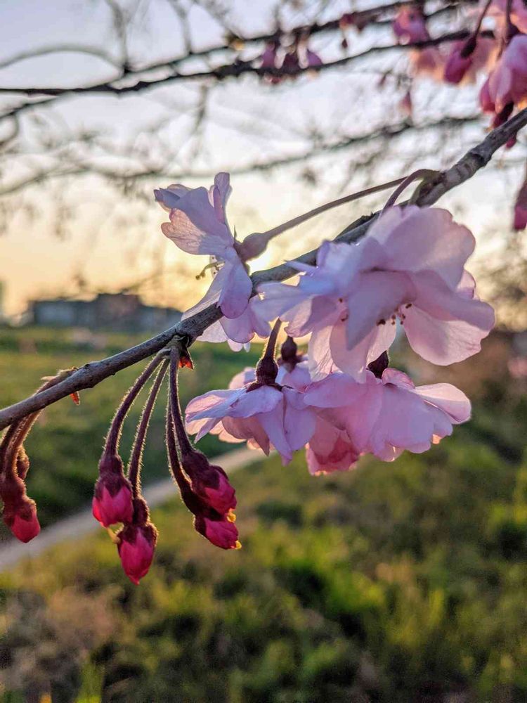 朝焼けをバックに枝垂れ桜が綺麗ですね❤️