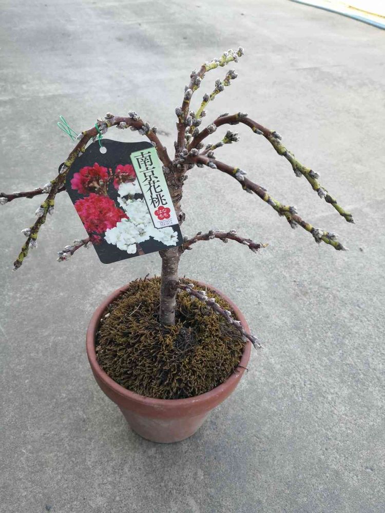 源平桃はひと枝から様々な色が混じりあって咲きますが南京桃は接ぎ木のため各枝で咲く色がはっきりと分かれて咲きます☺️