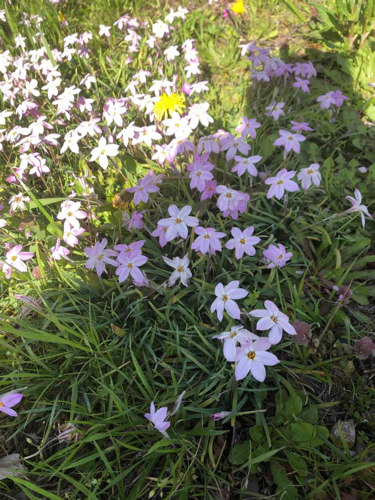 野原の桜の下に咲いてました♪ 桜の花の色と同色で綺麗です。花の名前がわかりません。