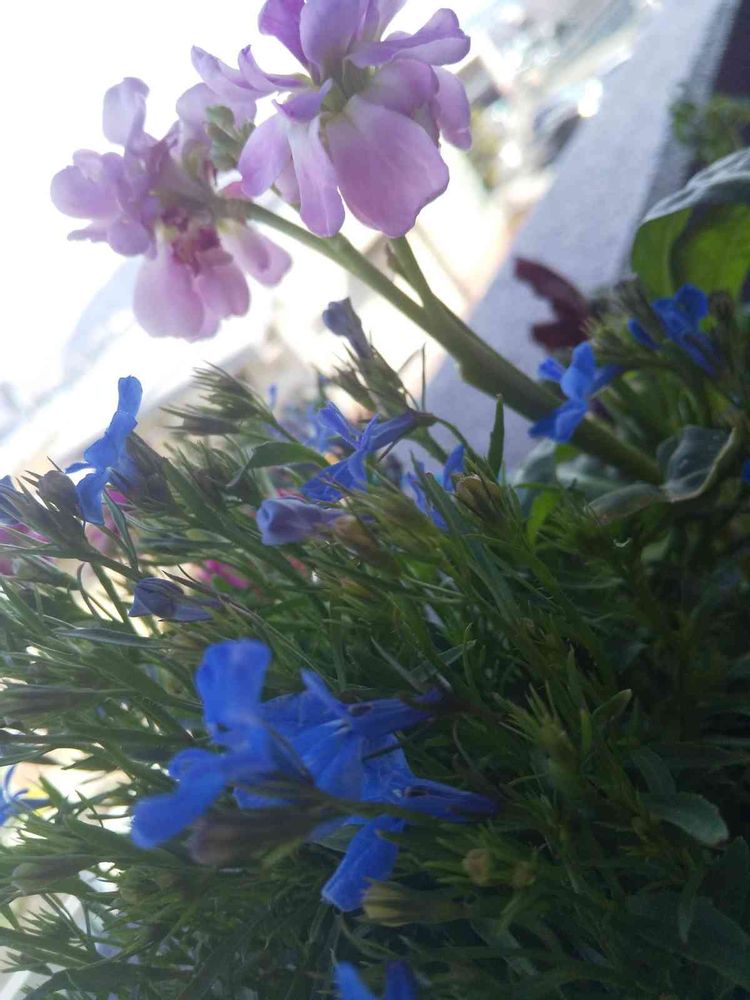 ロベリアと淡いピンクのストックで…
