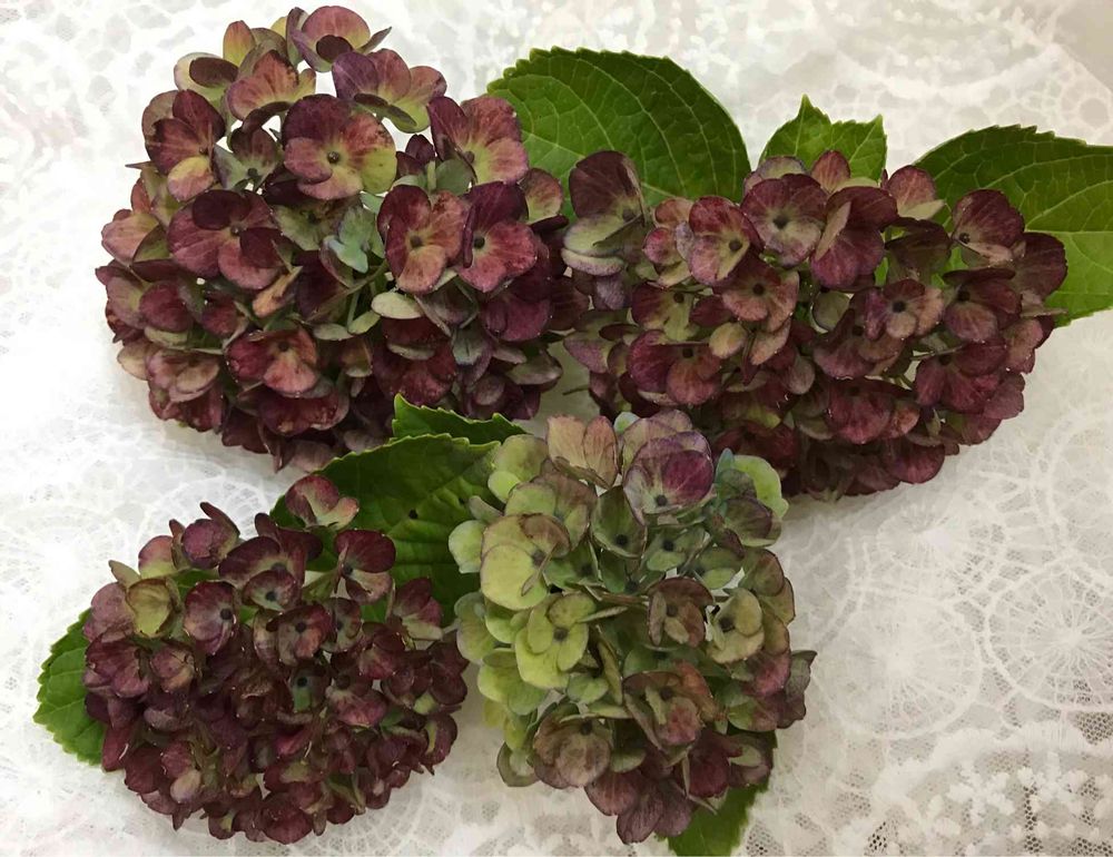 こんなに遅いので来年は花のつきが悪いかもしれないけど、好みの色味のアジサイ収穫できて満足です💕