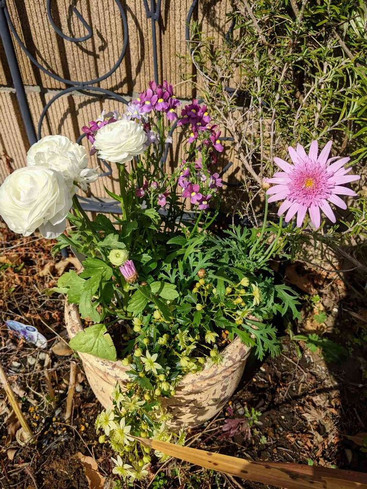 久しぶりに花苗を買いました😊全部欲しかったお花🌸で寄植えにしました😃でも真ん中がスカスカです💧蕾がいくつかあるから、もう少ししたらいい感じになりますように🙏