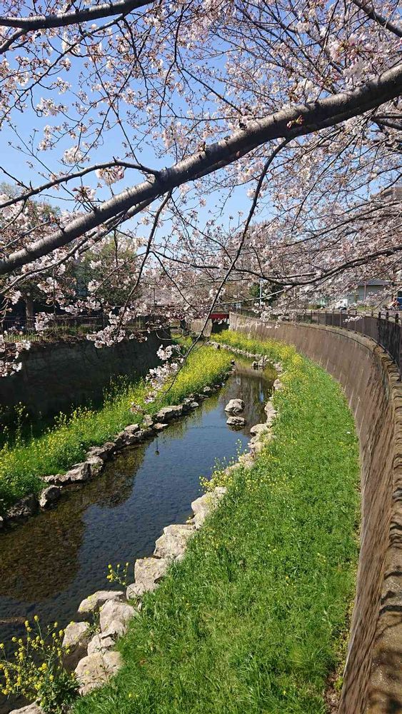 川には菜の花も咲いていて、最高のコラボレーションですね🌸