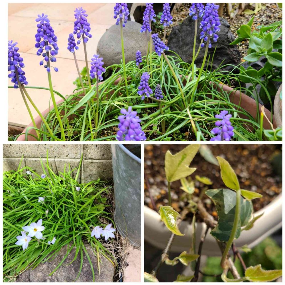 ムスカリが茎を長ーくのばし、誇らしげにアピールしてきます。丈夫な花ですね~💜