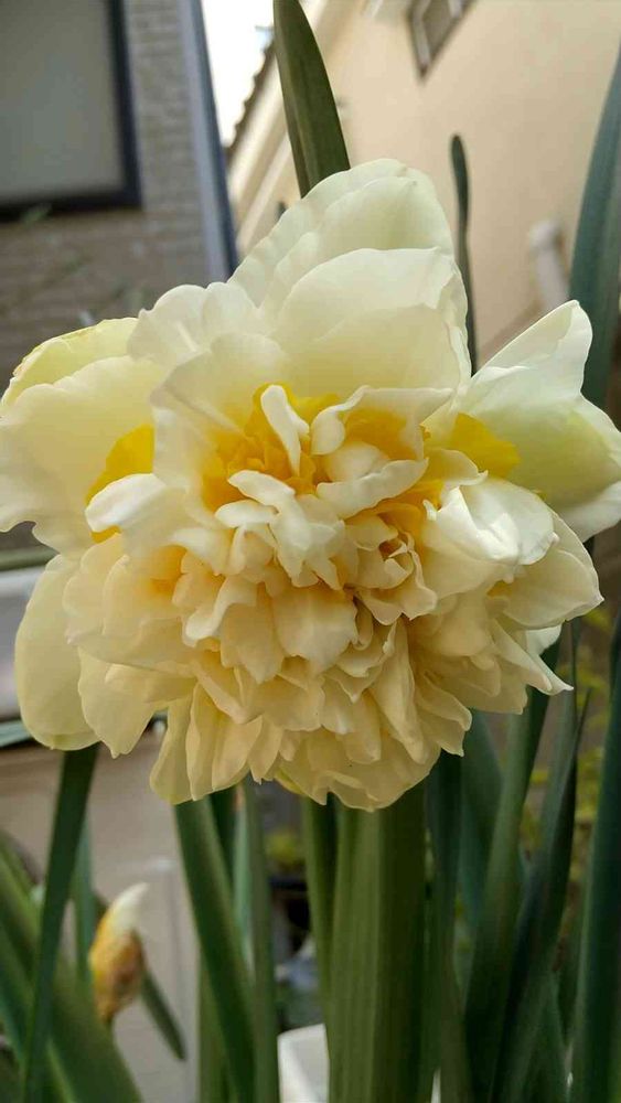 八重咲きの水仙やっと咲き始めました🍀淡いクリーム色です。もう少し開きそうです