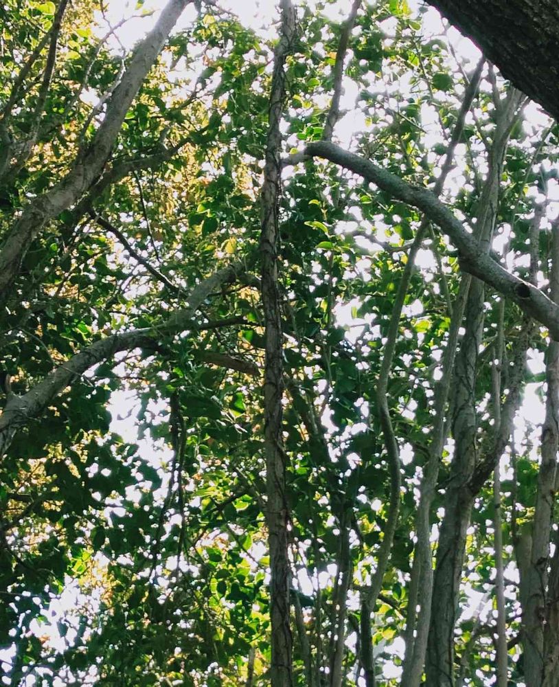 クスノキの奥に 樹木があり青空が透けて見えた 観に行こうとしたが 手前の登りは 危険だ!