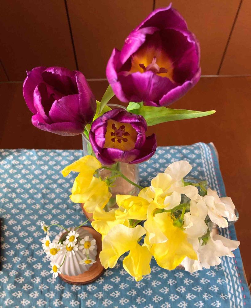 紫のチューリップ🌷と黄色いスイートピー✨✨✨