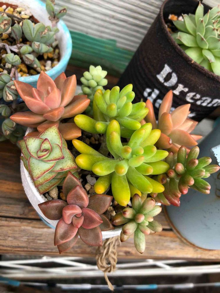 多肉ちゃん少なめの寄せ植え 夏は緑でちょっと寂しいかなって思ってても