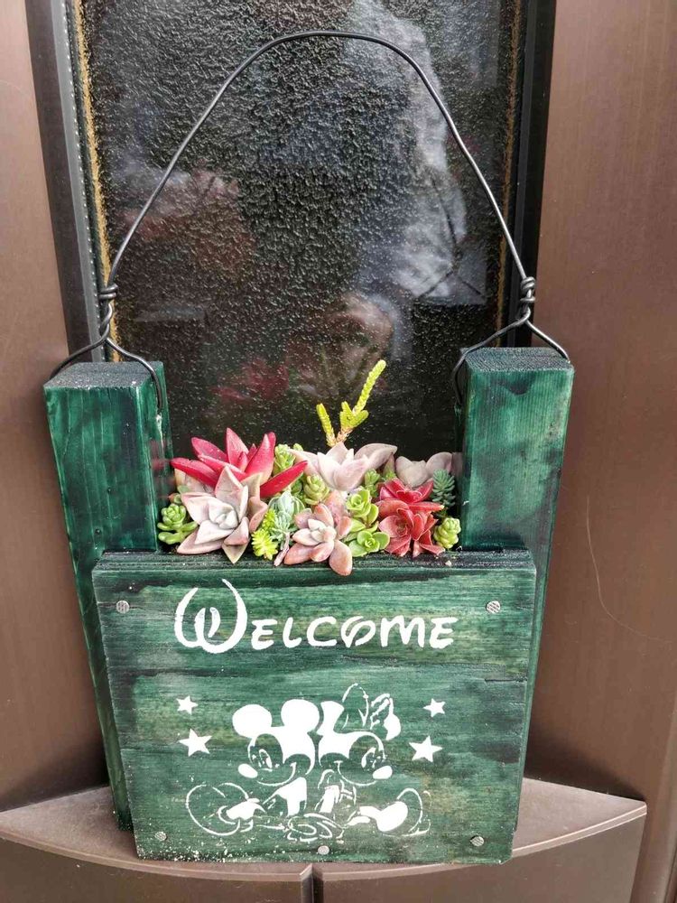 今日は、久しぶりにミッキーバージョン(^-^)残り物の板でDIYした入れ物に寄せてみました。