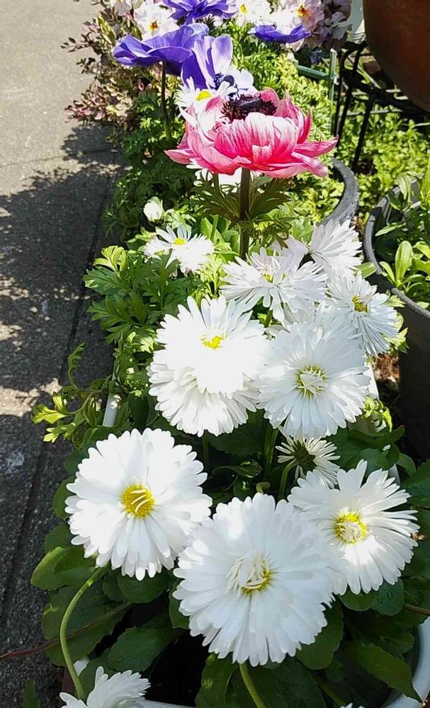 ピンクのアネモネと寄せ植えにして、紫もアネモネですが違う鉢でお一人様で植えてます