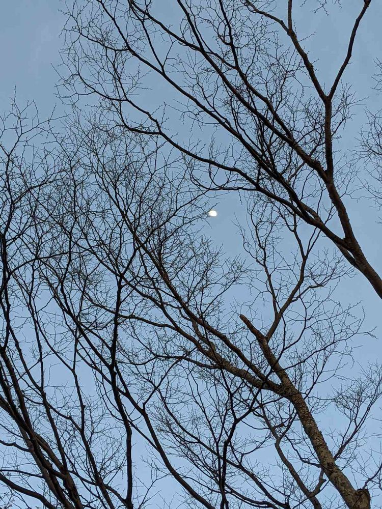 最近の木の芽立つ前のパワーチャージ満タンの樹木の狭間の月が素敵です💕