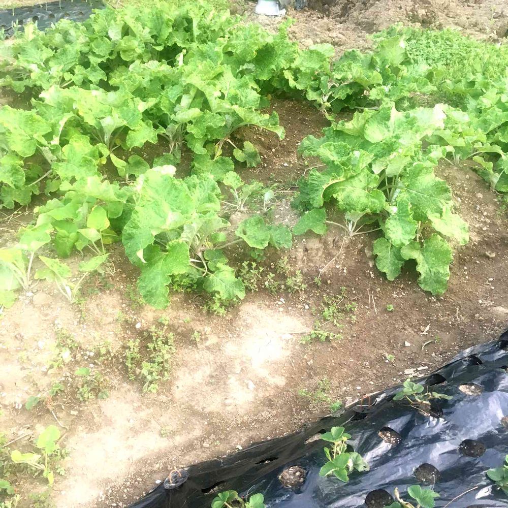 牛蒡2年目の春。どんどん育ってしまいます。この畝の他にも自生しているので厄介です。
