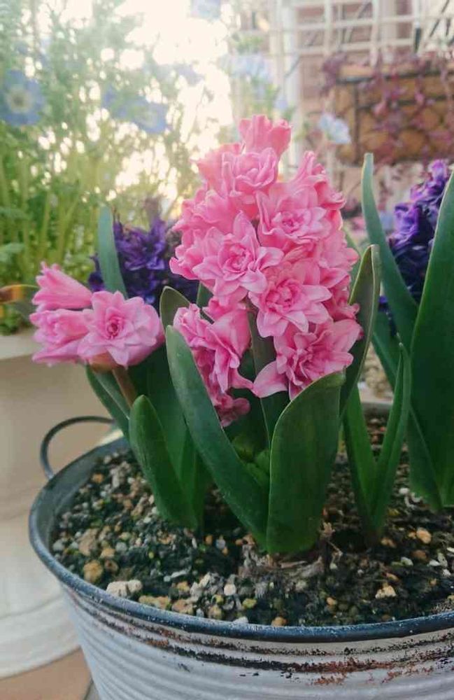 へむへむさんの小さな庭,八重咲きヒヤシンス,ブリキ鉢の投稿画像