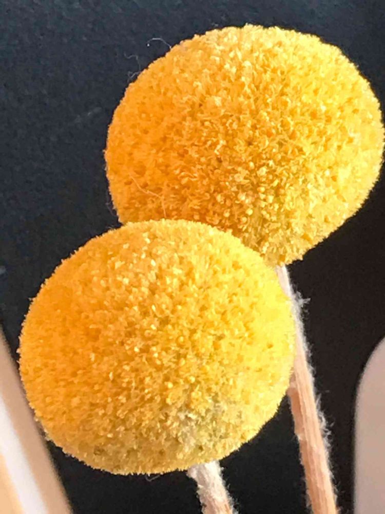 いつも行くパン屋さんに置いてある、直径2センチくらいのまあるいボール状のものが付いている植物です。