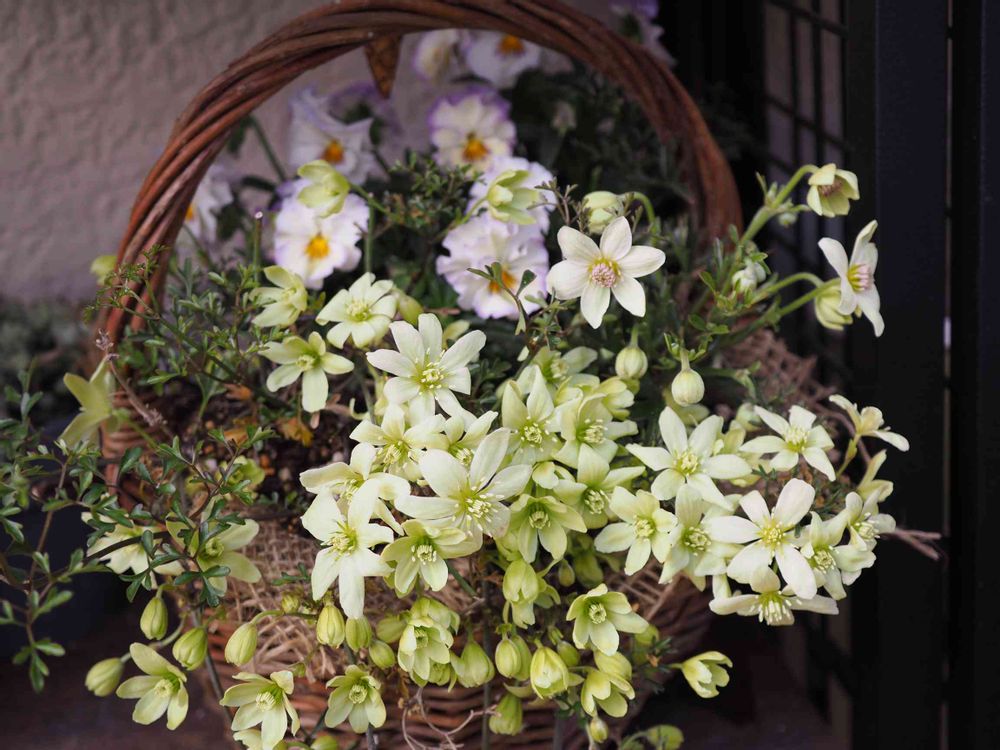 クレマチス、ペトリエイとカートマニージョーとビオラの寄せ植えです❣️