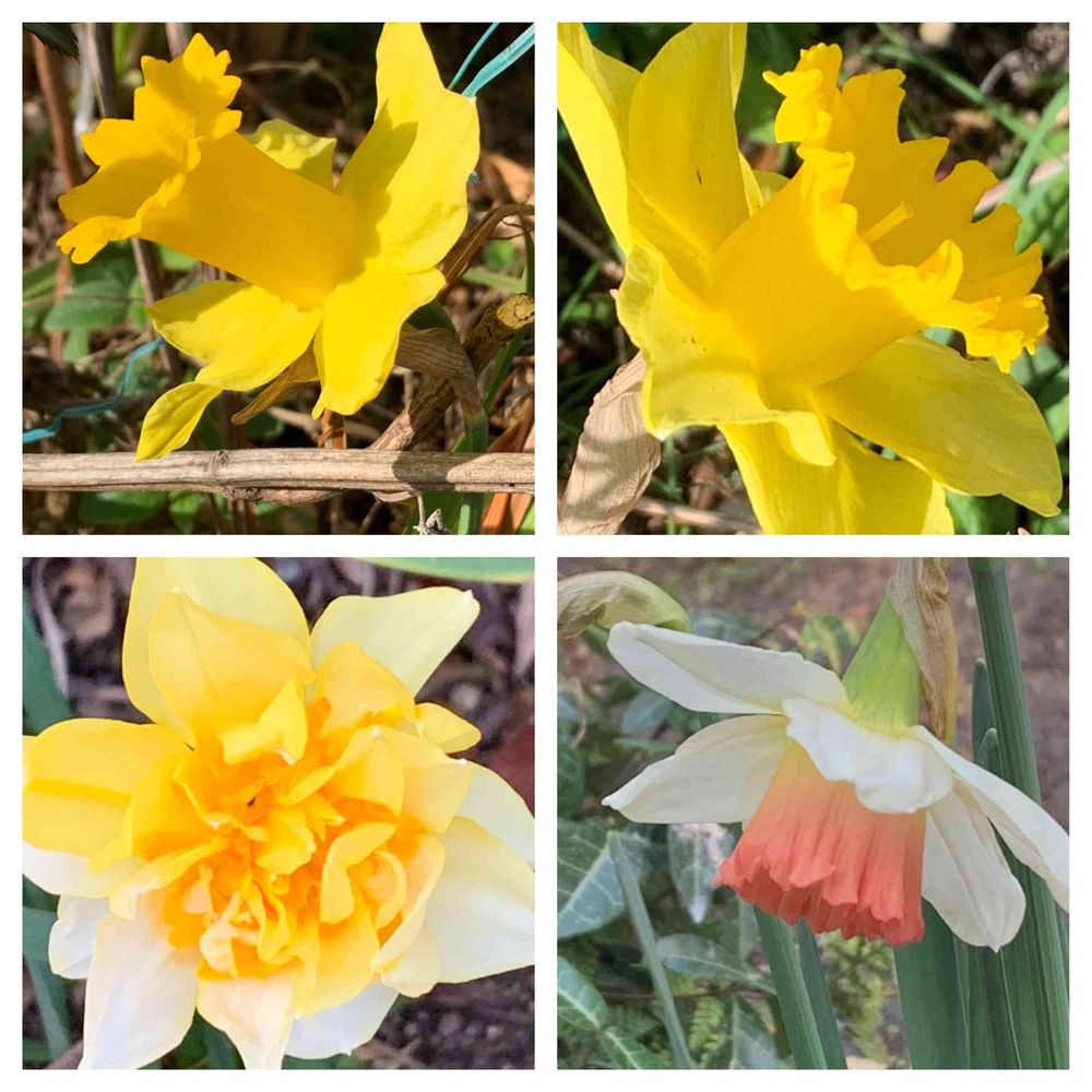 上の黄色のラッパ水仙はご近所さんからの頂き物