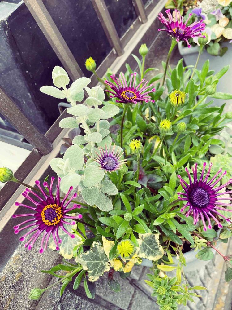 バルコニー/ベランダ,オステオスペルマム スプーン咲き,寄せ植えの投稿画像