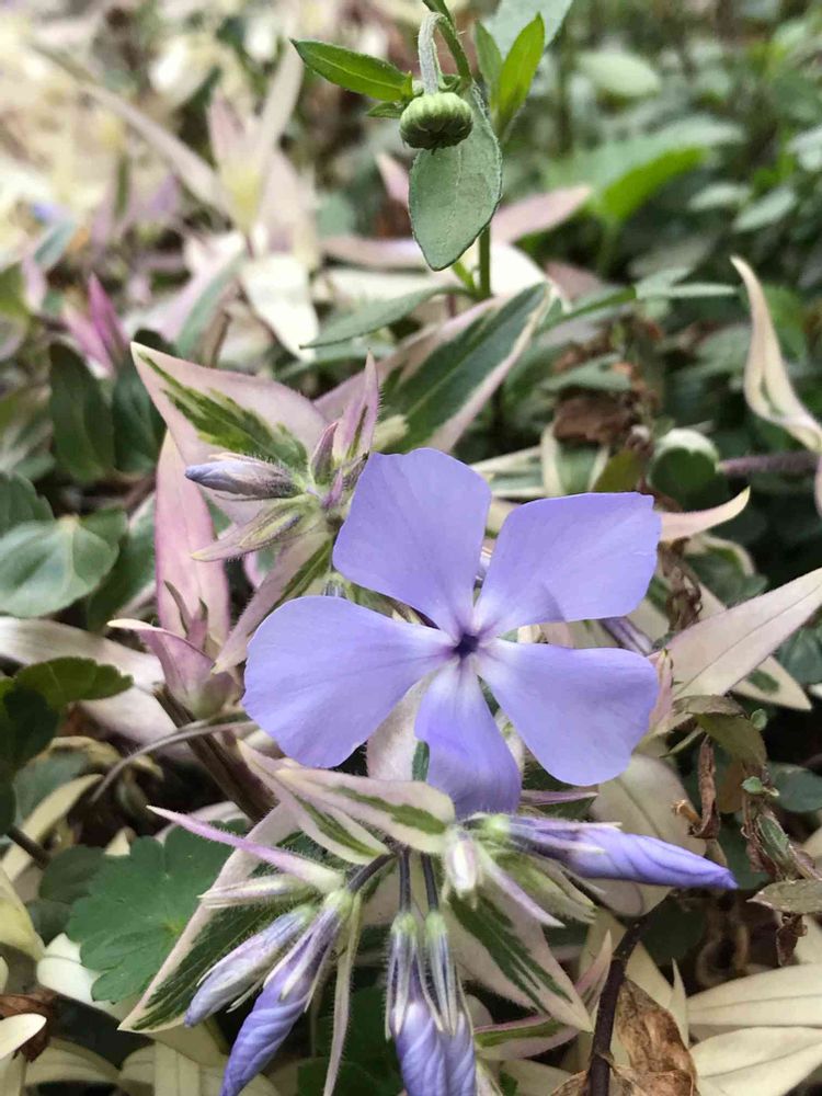 斑入りの葉っぱに、優しい藤色のこの子