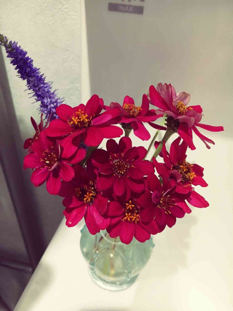 育ててるジニアとベロニカを洗面台に💕花があると気分もホッとします😌✨