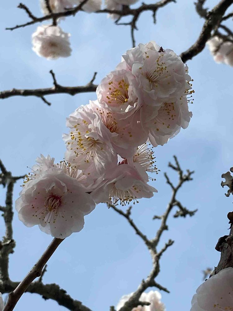 実家の庭にある豊後梅の花。八重咲きで可愛いです。