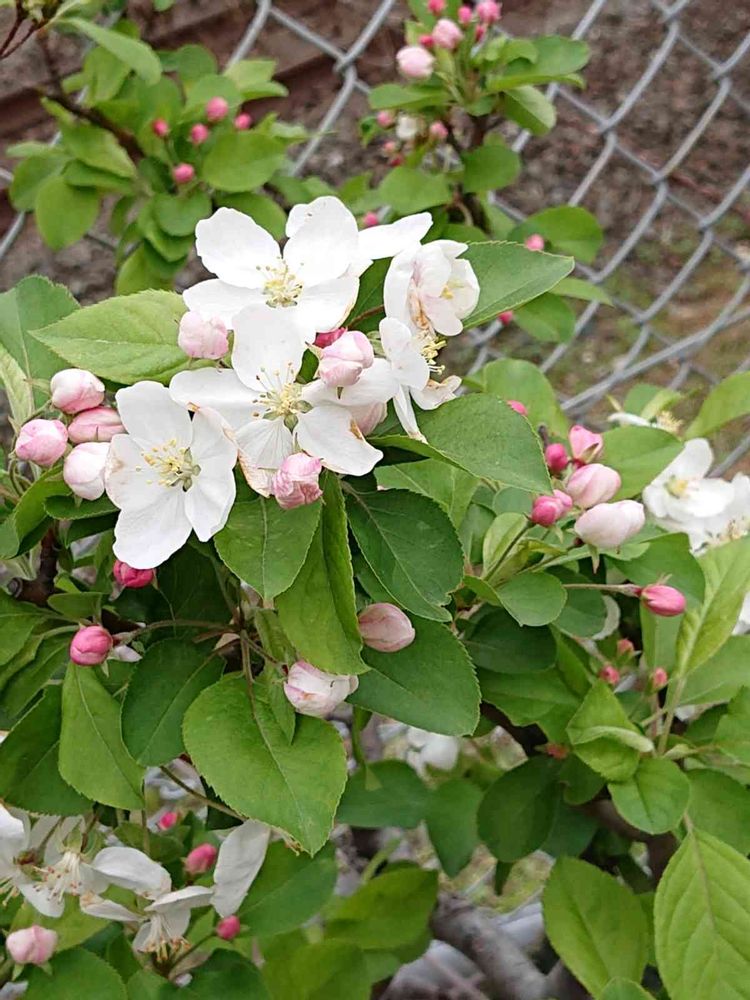 リンゴの花に似て見えますが本当にリンゴなのか、リンゴなら何という種類なのか、まだは分かりません💦