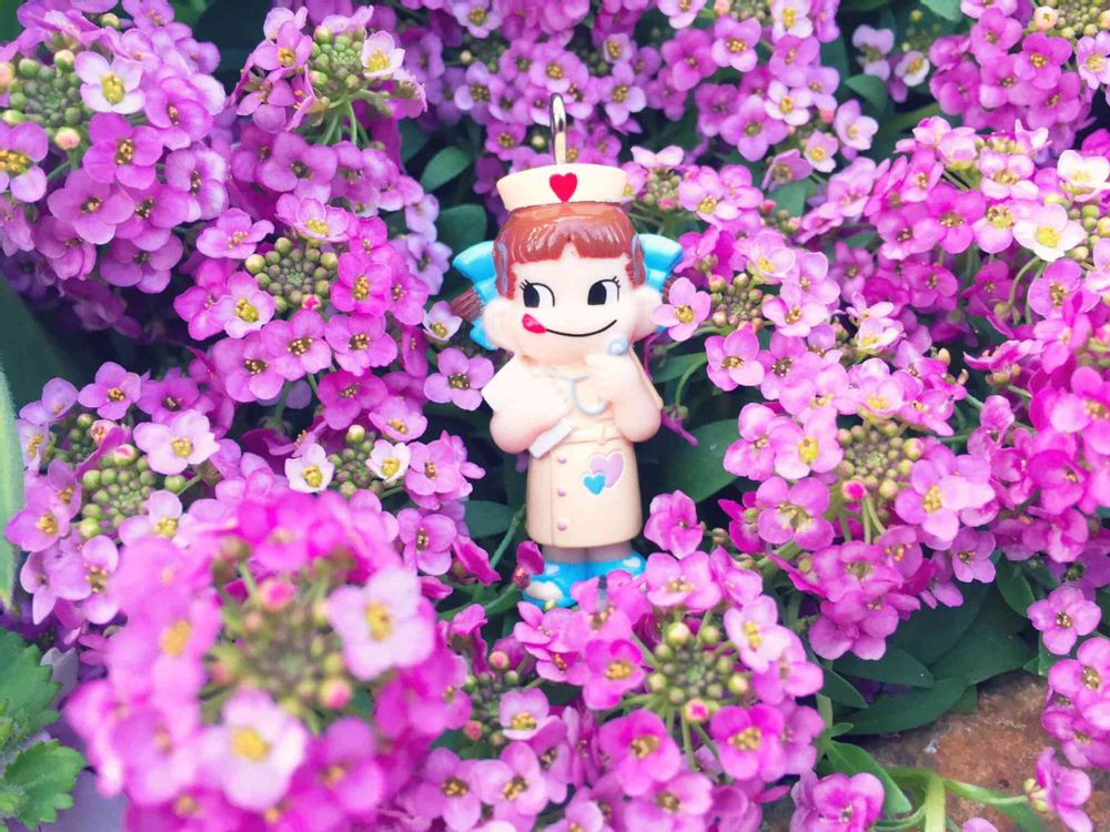 アリッサムに囲まれた看護師ペコちゃん可愛いです💕