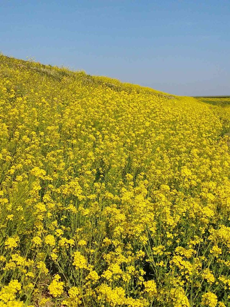 土色だった土手もこの時期だけは果てしなく菜の花色に染まり目を奪われます🎶