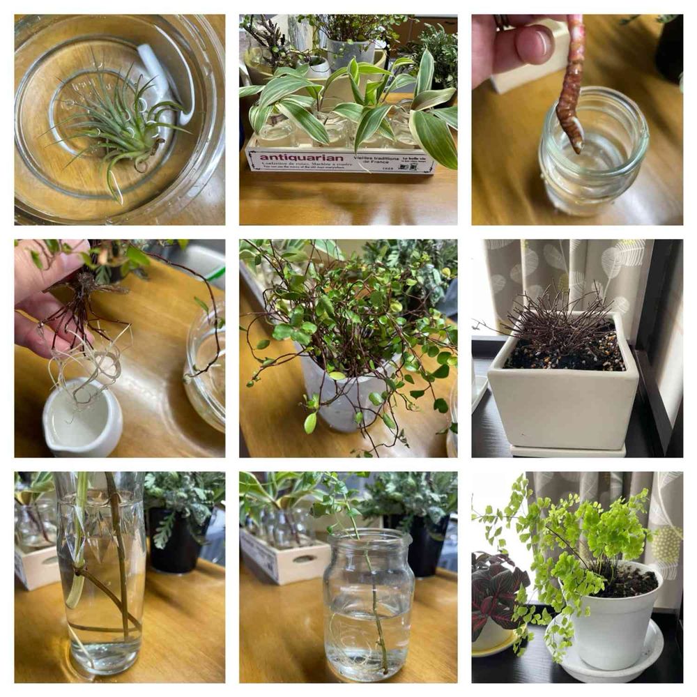 ⑦こちらはポトスの根。ずいぶんと伸びてます😅流石にそろそろ植えるかな、でも一本だけ💧