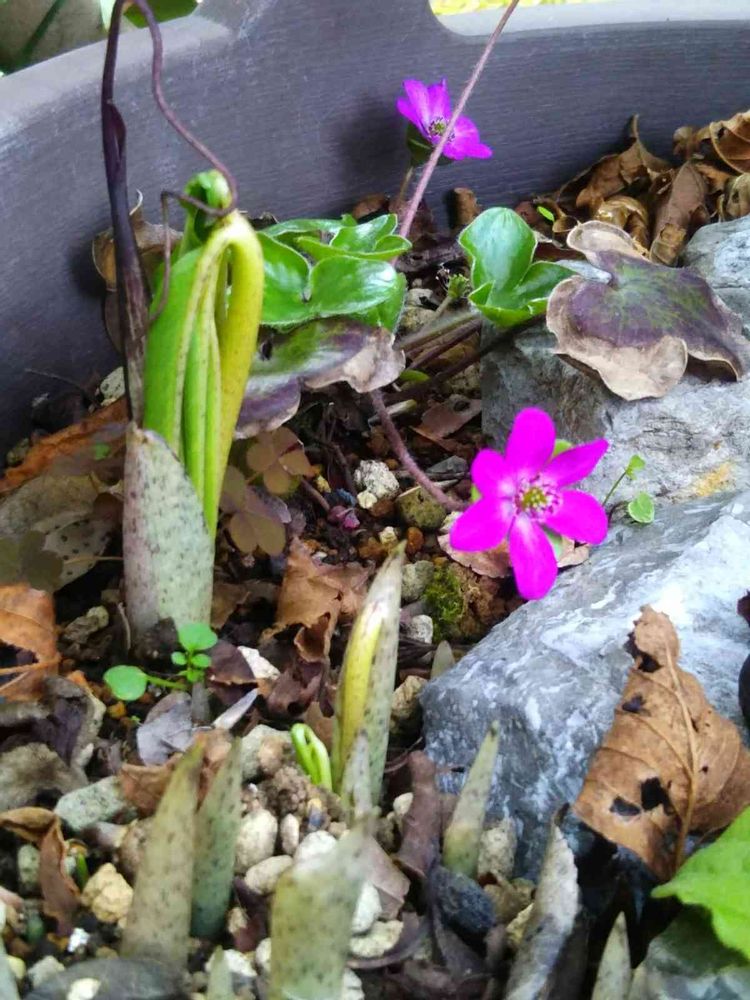 小さな庭,ウラシマソウ(浦島草),雪割草(ミスミソウ)の投稿画像
