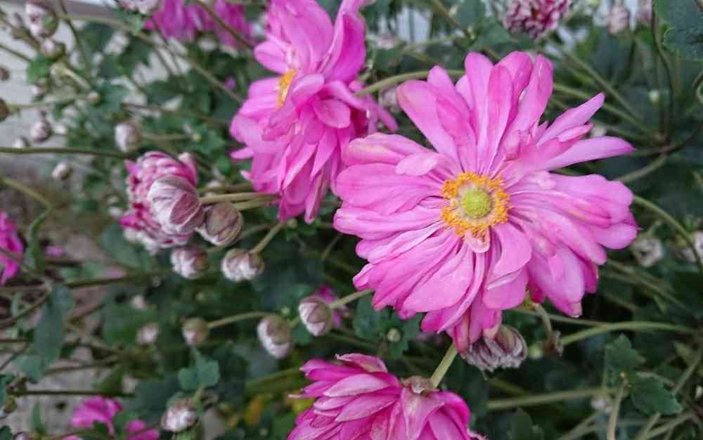 八重咲きの秋明菊さん可愛らしいです( ˶ˆ꒳ˆ˵ )