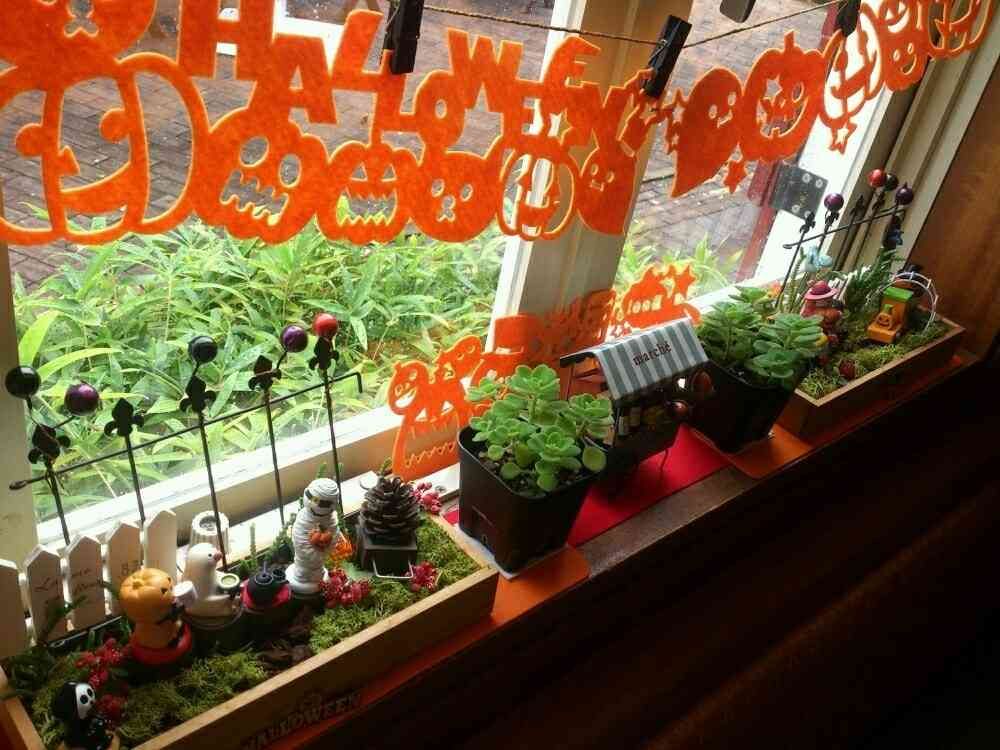 うちのお店に飾ったハロウィンにお邪魔してる…