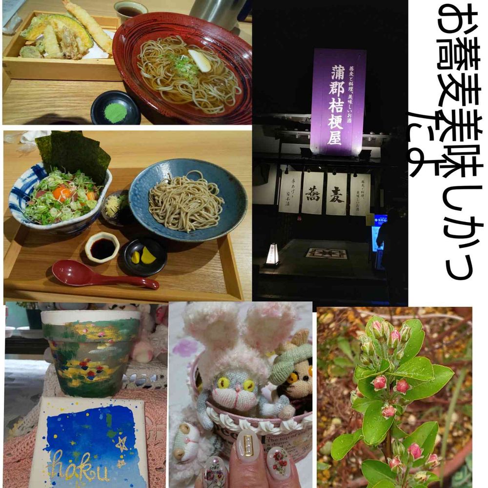 婆ちゃんの手に合わない😂娘が画家教室でリメ鉢作ってくれ撥水加工してありから雨大丈夫だよって☔お蕎麦屋個室で美味しく頂きお腹ポンポン又デブるよ