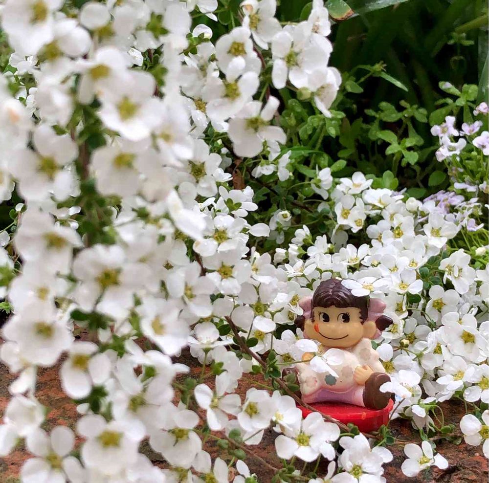 ちょこんってユキヤナギがペコちゃんに乗っかってるぅ〜- ̗̀ ♡ ̖́-