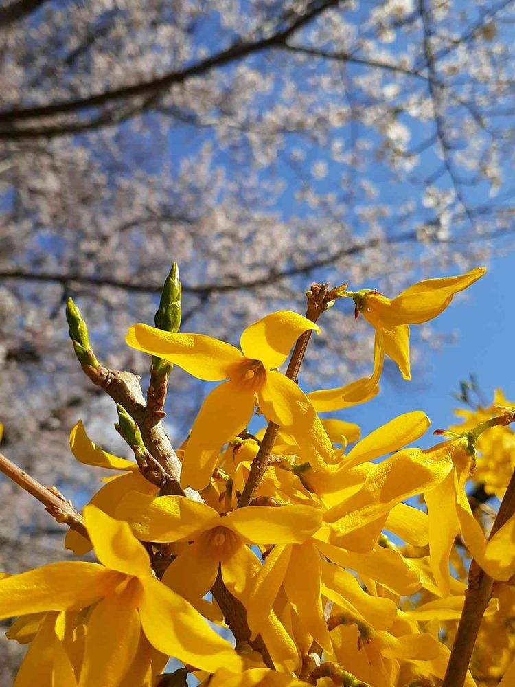 満開の桜🌸も素敵だけど、レンギョウも負けてない💪
