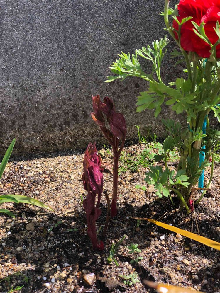 お隣さんから頂いた芍薬の球根から芽が出てきました🙌✨