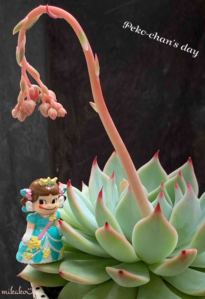ペコちゃんの頭上に咲くお花見たいね、何色なんだろう🤔