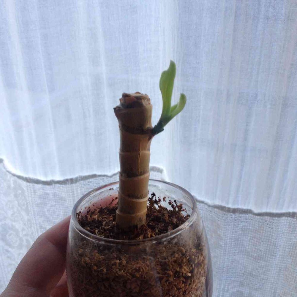 かなり前に切った幸福の木の切れ端をエコスギに挿して放置しておいたら、気付いたら芽が!