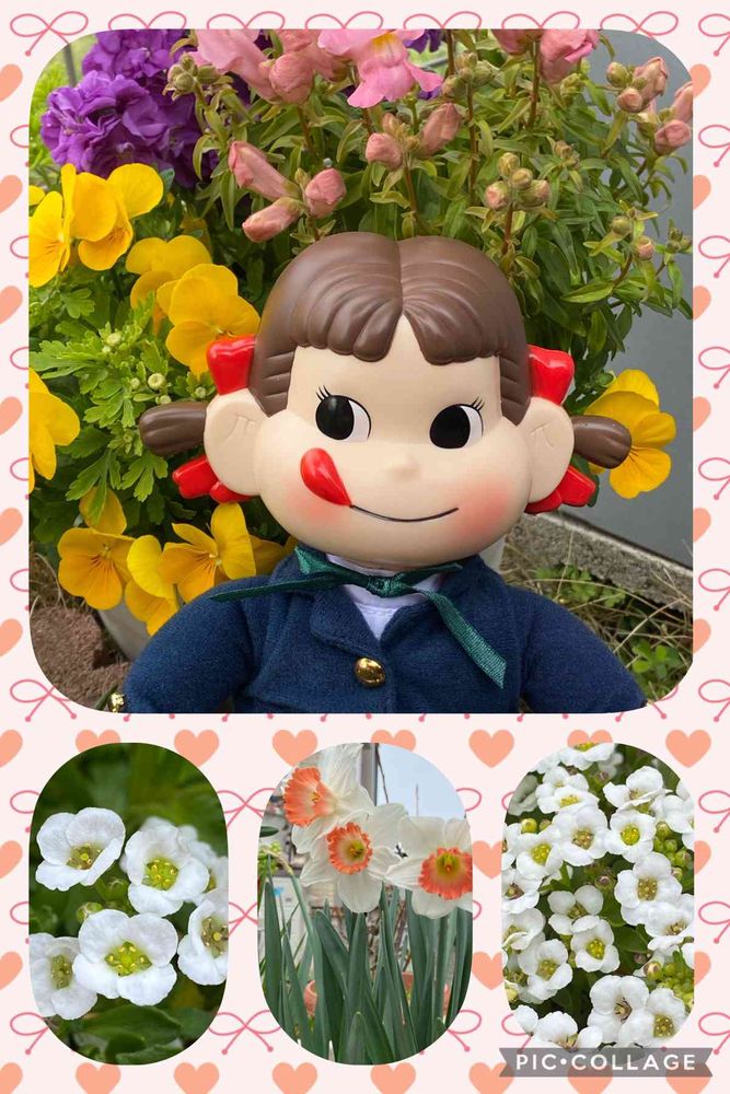 お花と、ペコちゃんコラボ とっても可愛い〜💖ね💕