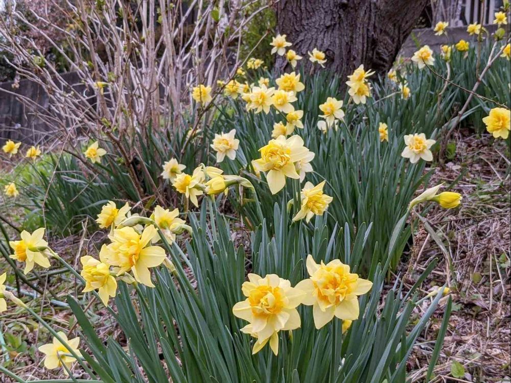 斜面の大きなセンダンの下の自生の?水仙…② 八重咲きです。