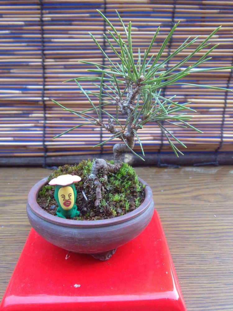 渋い盆栽と人形とのコラボがシュールで素敵ですね^_^