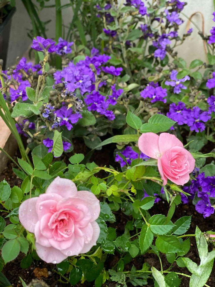 komiさんの小さな庭,ミニバラ ピーチ姫,ダンピエラ プルプレア フレアの投稿画像