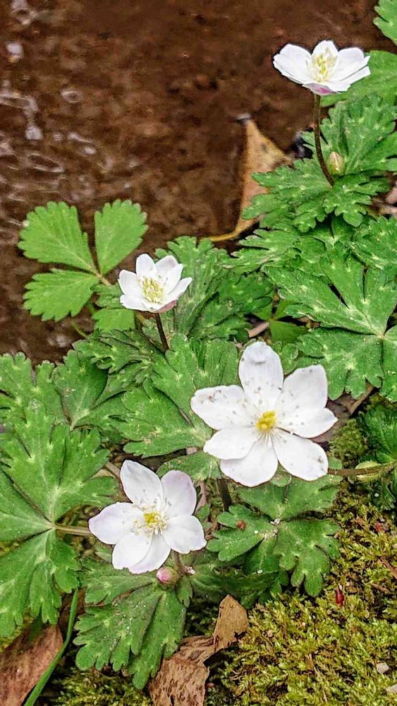 小川の横にニリンソウが